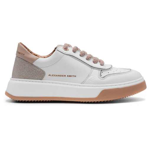 Alexander Smith• Sneakers in FreeBio bianca • Tessuto cangiante rose a contrasto • Logo a lato a contrasto • Soletta estraibile • Suola interna in ReFoam • Tacco ...