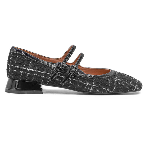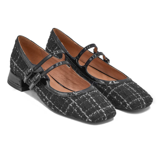 Bibi Lou• Mary Jane in tweed nero • Sottili cinturini lucidi, regolabili • Punta quadrata • Interno in pelle • Suola in gomma Thunit resistente all'usura •...