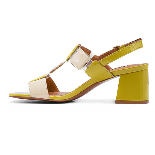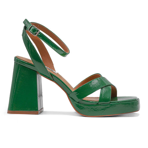 Bibi Lou• Sandalo in vernice nero • Gioco di fasce frontali • Punta quadrata e cuciture a vista • Interno in pelle • Cinturino regolabile • Suola in cuoio ...