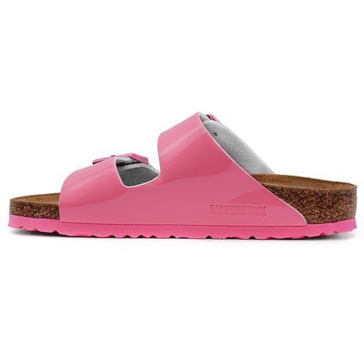 Birkenstock• Sandalo in pelle laccata brillante rosa • Fibbie ad ardiglione logate oro • Punta stondata • Plantare in sughero e lattice • Sottopiede del plant...