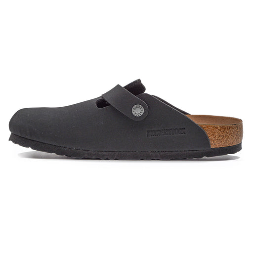 Birkenstock• Sabot in camoscio nero• Variazione del classico Boston• Punta stondata• Plantare in sughero e lattice• Intersuola in EVA• Sottopiede in pelle• Su...