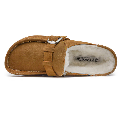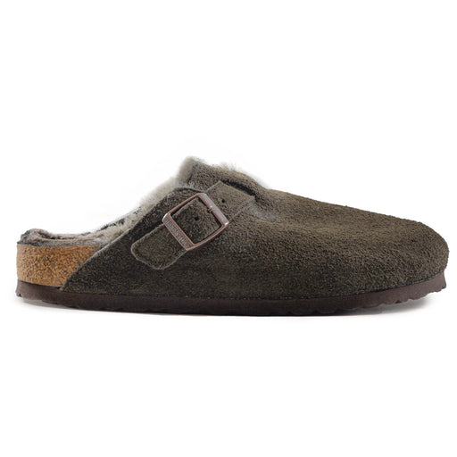 BirkenstockSabot Birkenstock da donna Made in Germany, modello Boston Shearling mink in pelle scamosciata tabacco. Punta stondata, logo impresso nelle fibbia ...