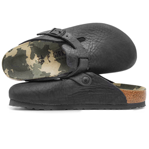 Birkenstock• Sabot Boston nero • Pelle in nabuk oleata senza cuciture • Cinturino con fibbia regolabile • Punta stondata • Plantare anatomico in sughero e lat...