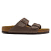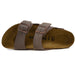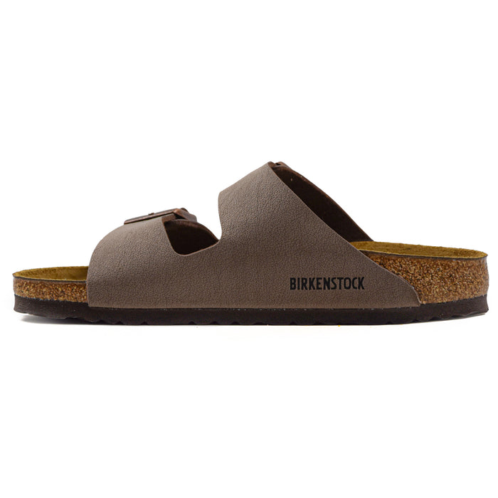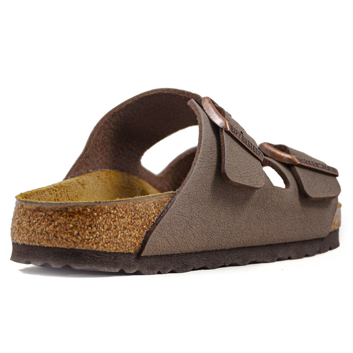 Sandalo Birkenstock da donna Made in Germany, modello Arizona in ecopelle mocca con due fasce frontali regolabili da fibbie.