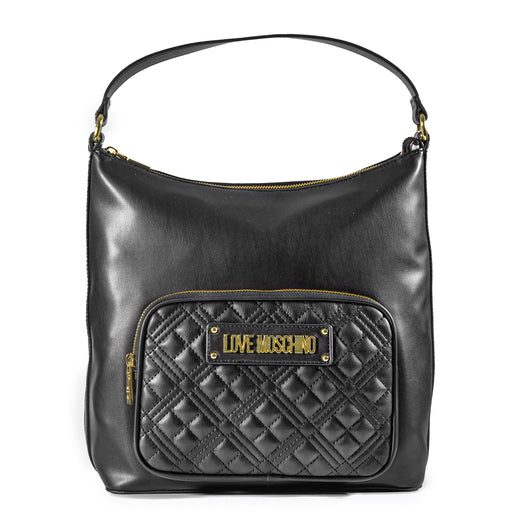 Love Moschino• Borsa Love Moschino in ecopelle nera • Effetto embossing trapuntato • Pattina frontale decorata con monogramma dorato • Tracolla con catena dora...