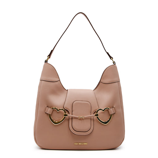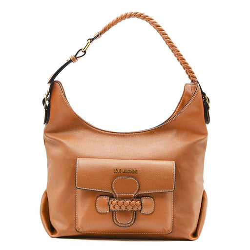 Love Moschino• Borsa in ecopelle cammello • Dettagli a treccia in tinta • Tracolla regolabile e removibile con logo Lettering • Logo Lettering e logo LM con cuo...