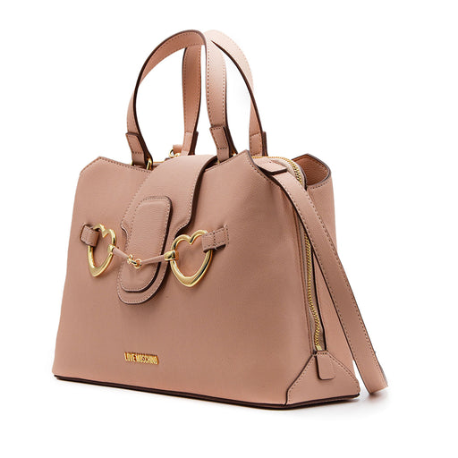 Love Moschino• Borsa Love Moschino in morbido materiale embossed sabbia • Monogramma dorato centrale sulla pattina con logo sotto • Struttura aperta nella parte...