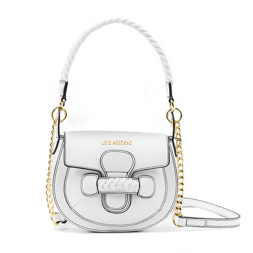 Love Moschino• Borsa in ecopelle avorio • Designer dalle linee arrotondate • Pattina con logo oro • Tracolla in ecopelle removibile • Manico con estremità a mon...