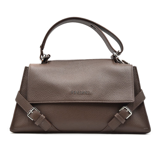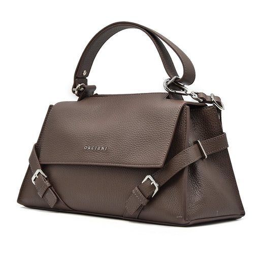 Orciani• Borsa a spalla in pelle martellata soft marrone testa di moro • Manico in pelle funzionale • Tracolla regolabile e removibile • Chiusura a patta ...