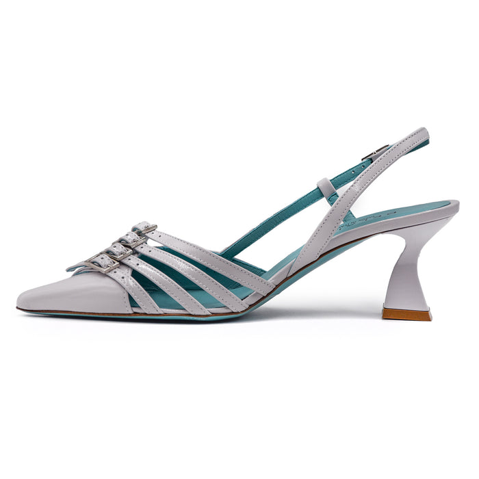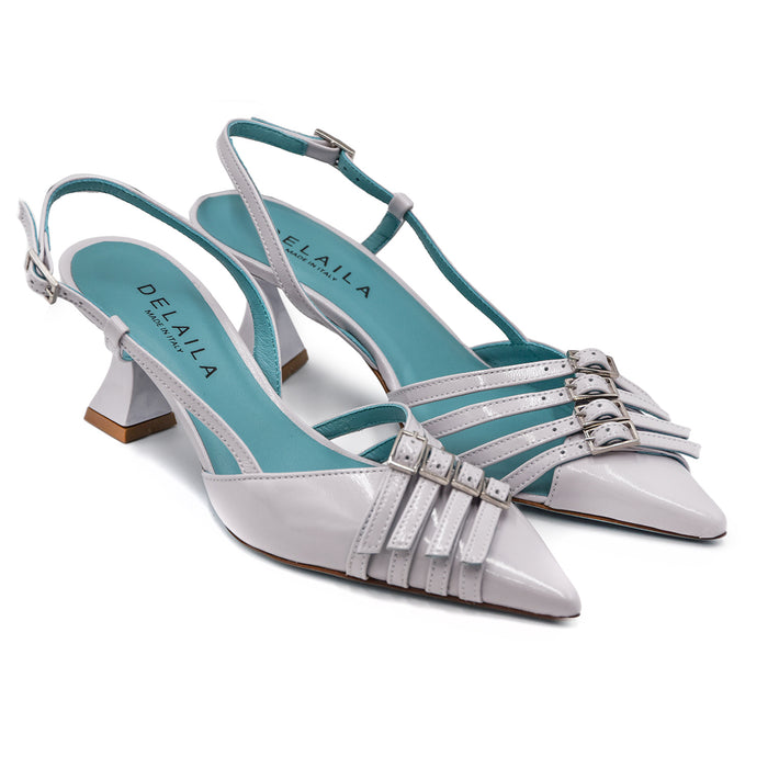 • Slingback in pelle patent perla