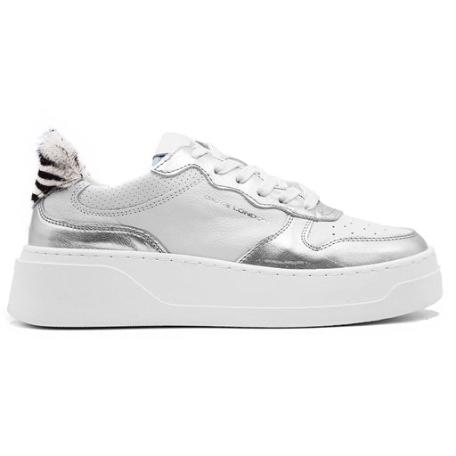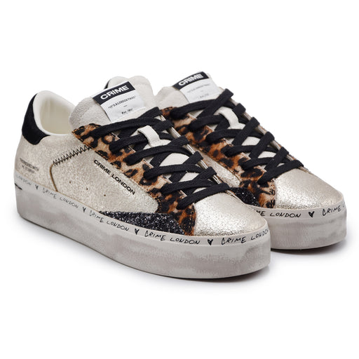 Crime• Sneaker Crime donna modello Distressed Platform • Pelle naturale color platino e inserti glitterati • Dettagli animalier sulla tomaia • Punta arr...