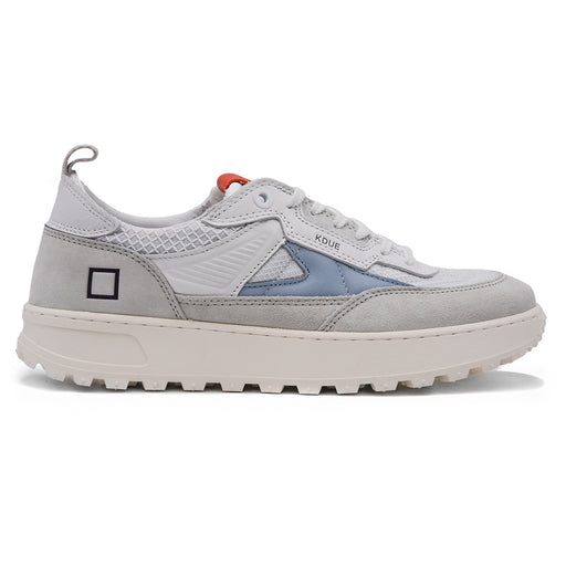 D.A.T.E.• Sneakers D.A.T.E. Fuga Uomo • Pelle bianca di alta qualità con dettagli curati • Spoiler posteriore in pelle grigia, dettagli azzurri e cuoio lat...