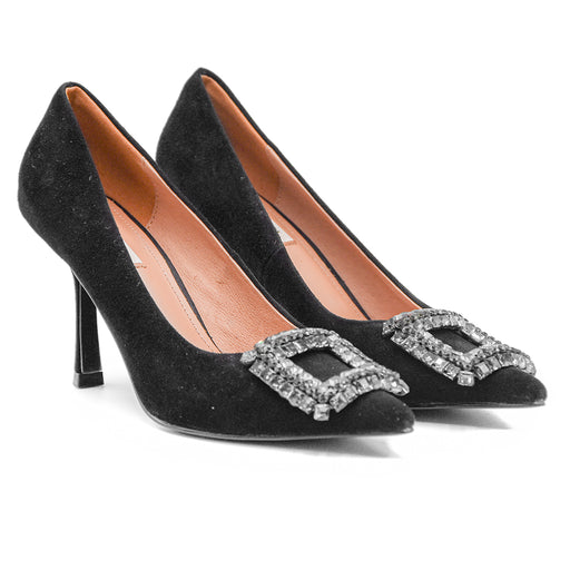 Chantal 1962• Décolleté in vernice nero • Placca decorativa frontale • Silhouette a punta • Interno in pelle • Tacco a stiletto di 8 cm • Calzata regolare • A...