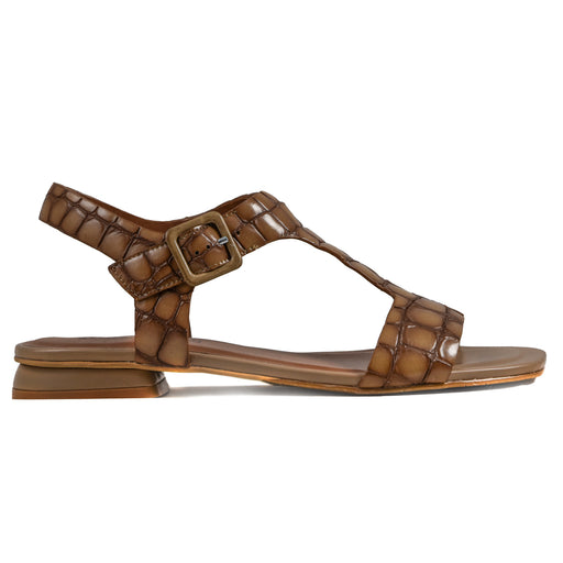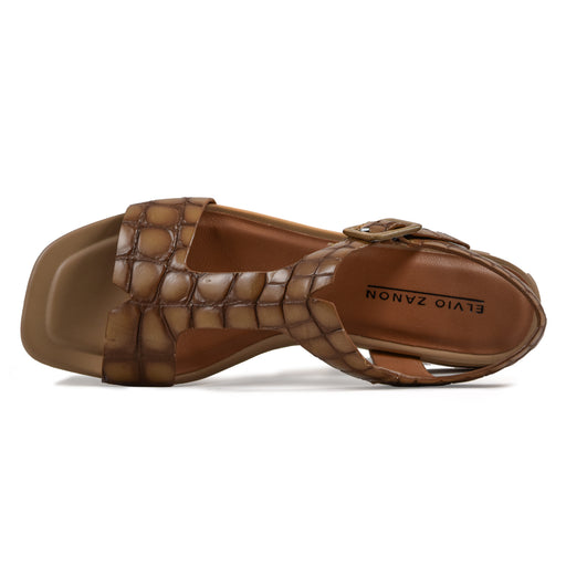 Elvio Zanon• Sandalo slingback Elvio Zanon donna color cammello • Maxi fibbia laterale tono su tono • Tomaia con fascia ampia e apertura laterale • Punta squa...
