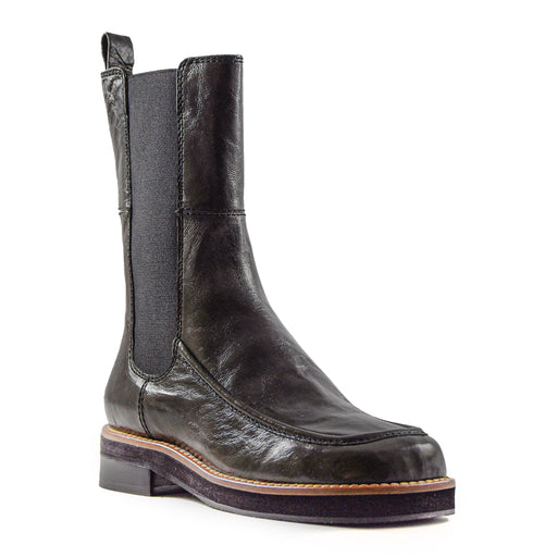 Elvio Zanon• Stivaletto Elvio Zanon color nero • Pelle nera liscia lucida • Cuciture a vista • Design minimal con punta stondata • Interno in pelle con solet...