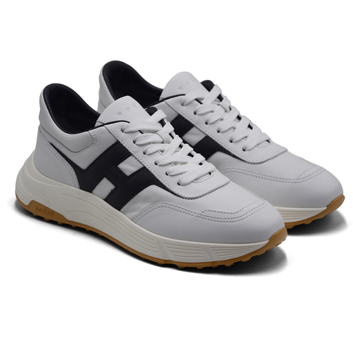 Hogan• Sneakers Hogan Hyperlight da uomo • Linee dinamiche ispirate al mondo running • Tomaia in pelle liscia bianca • H laterale obliqua color blu • Vo...