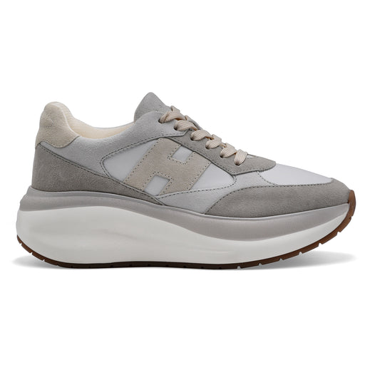 Hogan• Sneakers Hogan donna modello H705 • Tomaia in morbida pelle bianca con inserti in pelle scamosciata grigia • Tallone e "H" iconica laterale in ro...