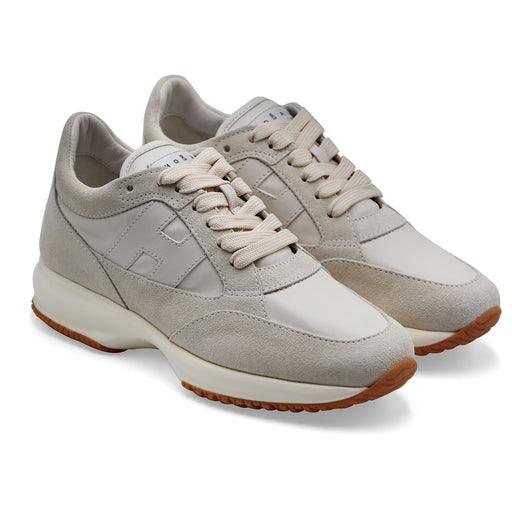 Hogan• Sneaker Hogan Interactive donna • Design elegante e contemporaneo • Pelle scamosciata avorio con inserti in nappa • H laterale in pelle tono su t...