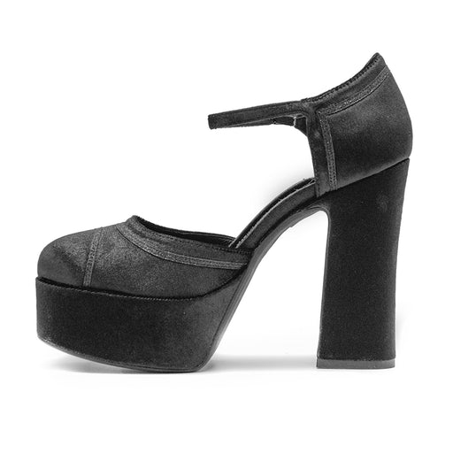 Jeffrey Campbell• Décolleté in velluto nero • Tallone e punta chiusi • Cinturino alla caviglia • Punta a mandorla • Interno in pelle • Tacco a colonna di 12 cm • M...