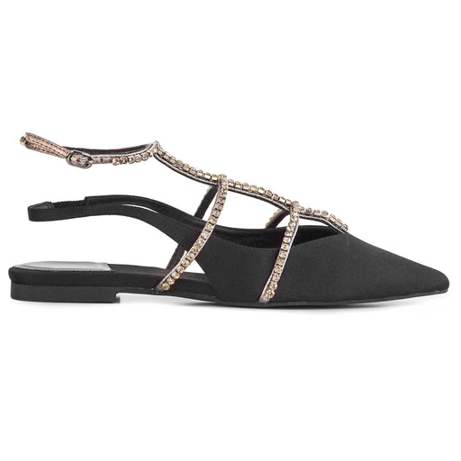Jeffrey Campbell• Slingback Jeffrey Campbell DIRECTED • Tomaia in pelle nera con cinturino con doppi fori regolabili • Silhouette a punta goffrata e allungata, mol...