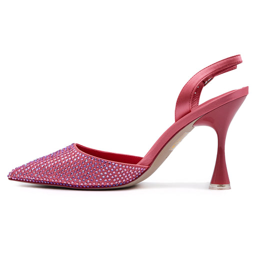 - Punte affusolata, tacchi geometrici, tomaie con texture a contrasto per una femminilità non convenzionale.