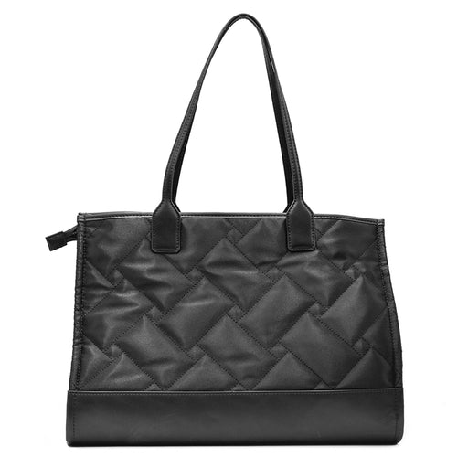 Kurt Geiger• Borsa in nylon riciclato nero • Trapuntatura overstitch in motivo trama • Balza terminale in ecopelle • Doppi Manici • Testa Aquila anticato con...