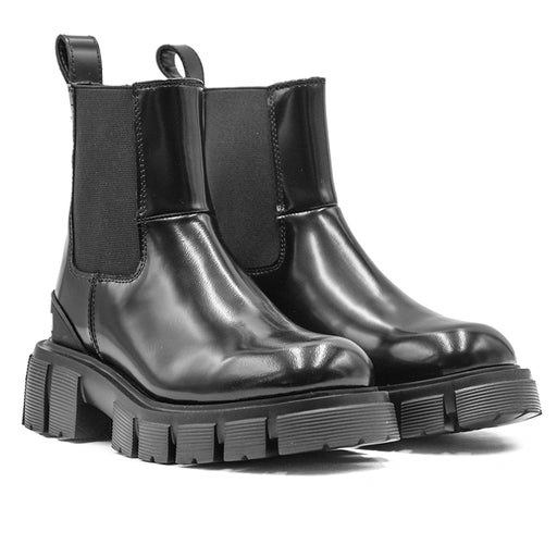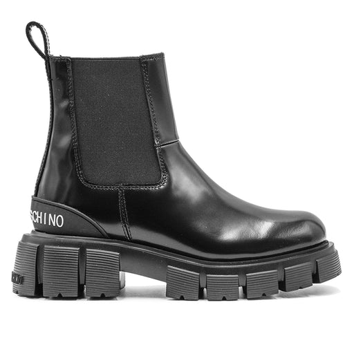 Love Moschino• Chanel in ecopelle lucida nera • Cinturino con logo lettering a contrasto • Cinturino regolabile • Punta quadrata • Interno in pelle • Suola in g...
