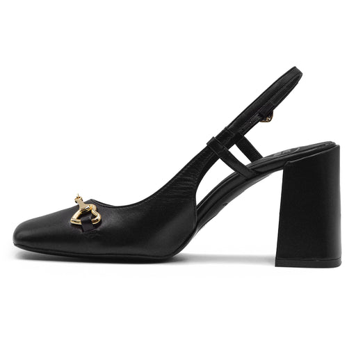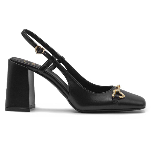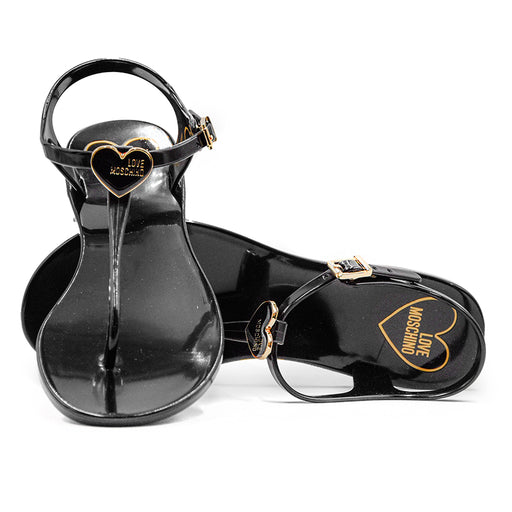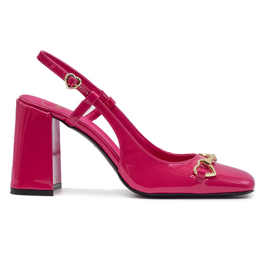 Love Moschino• Chanel in vernice nera • Morsetto in metallo oro • Cinturino regolabile, fibbia a cuore • Punta quadrata • Interno in pelle • Suola in gomma • T...