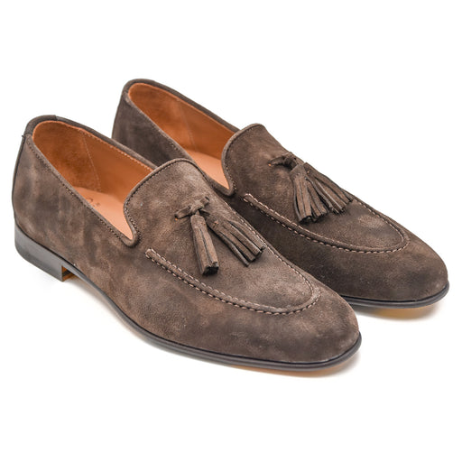 Cerbero• Mocassino in morbido camoscio testa di moro • Abbellimento con nappine • Punta affusolata • Vaschetta con cucitura a contrasto • Sottopiede in pe...