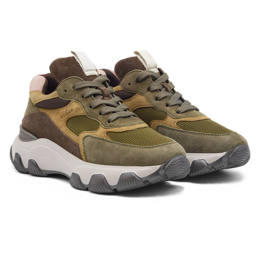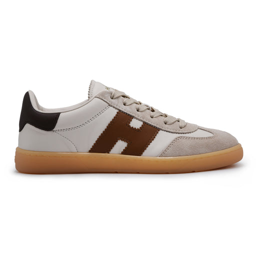 Hogan• Sneaker donna Hogan modello Cool • Tomaia in nappa e pelle scamosciata nelle tonalità beige, marrone e avorio • H laterale dentellata in pelle li...