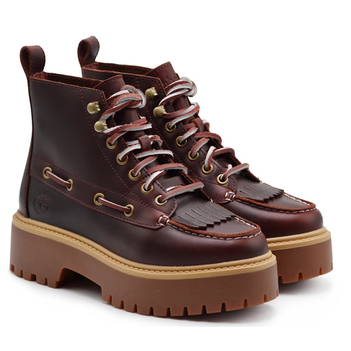 Timberland• Stivaletto allacciato Timberland Stone Street donna • Tomaia in pelle burgundy Premium Leather Timberland® proveniente da concerie certificate da...