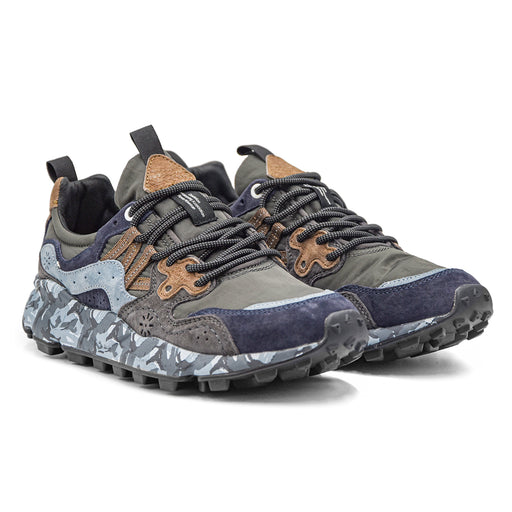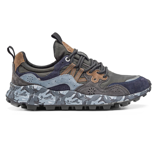 Flower Mountain• Sneakers uomo Flower Mountain Yamano 3 • Tomaia in nylon grigio con inserti in pelle scamosciata blu e marrone • Soletta interna in sughero natur...