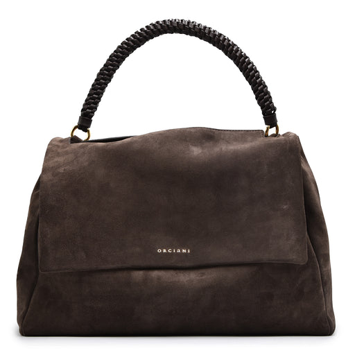 Orciani• Borsa a spalla in pelle scamosciata marrone testa di moro • Patta con bottone magnetico • Apertura a scomparsa sulla parte alta • Manico intrecci...