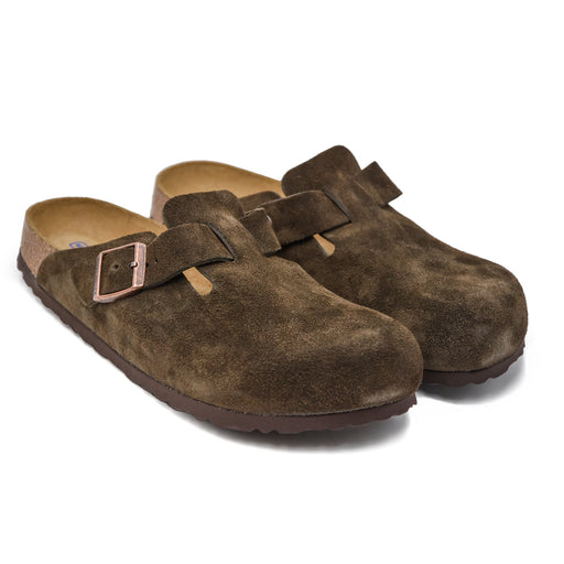 Sabot Birkenstock Boston Uomo In Camoscio Mocca Plantare Soft