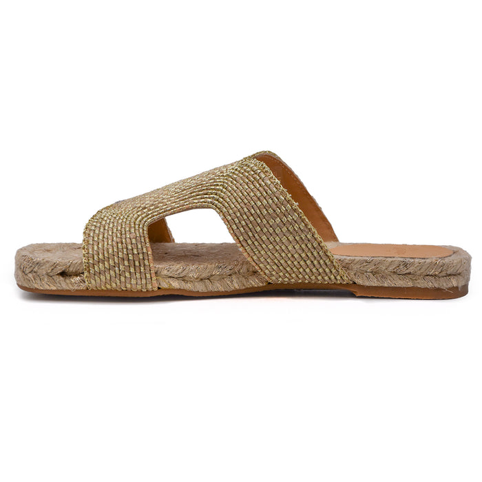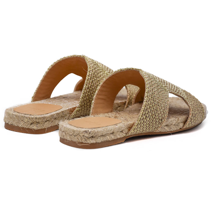 Sandali Bassi Castañer Donna Modello Puri Juta Oro Intrecciata