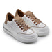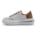 • Tomaia in pelle bianca con tallone e lacci color cognac a contrasto