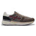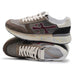 • Tonalità calde del marrone con logo Premiata in pelle bordeaux a contrasto