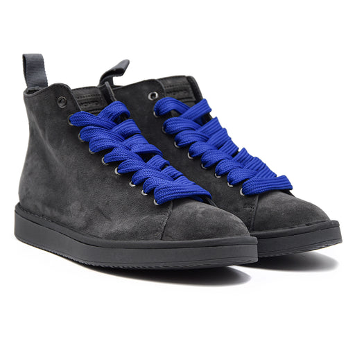 Panchic• Polacchino Panchic uomo in suede grigia • Lacci a trama larga in blu elettrico • Laccio di ricambio tono su tono con la suola • Linguetta con lo...