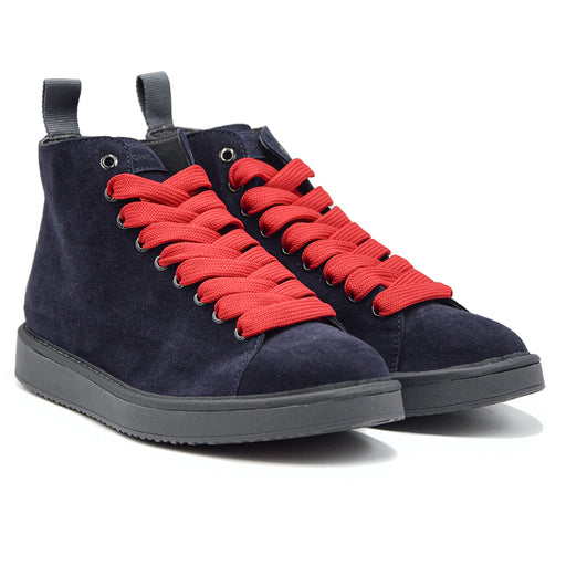 Panchic• Sneakers in camoscio blu • Dettagli in pelle • Lacci sostitutivi rossi • Elastici interni per agevolare i movimenti • Interno in tessuto e pelle ...