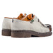 • Stringata in pelo rasato su base di pelle marrone-bianco