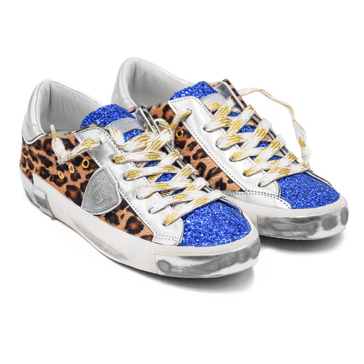 Philippe Model• Sneaker Philippe Model PRSX LOW WOMAN - Glitter Metal Pony Noir Or • Pelle e camoscio nero con inserti glitter tono su tono • Dettaglio in pelle ...