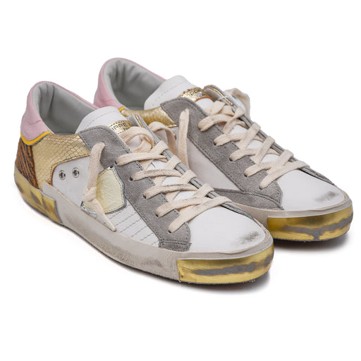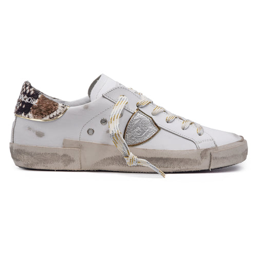 Philippe Model• Sneaker Philippe Model donna Prsx • Design urban-chic e silhouette essenziale • Tomaia in pelle bianca con finitura effetto used • Scudetto later...