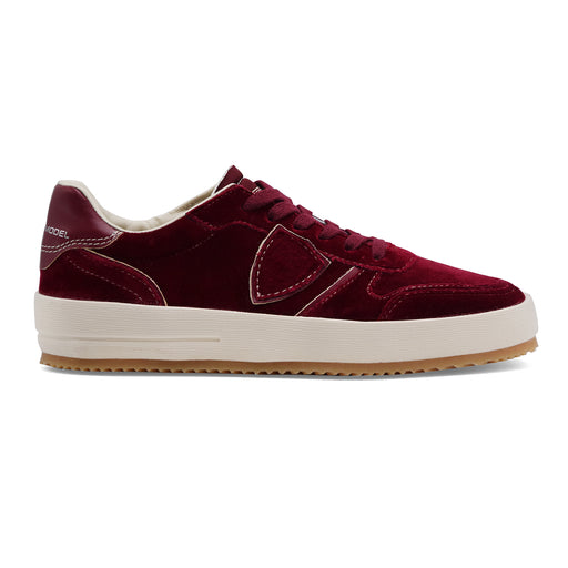 Philippe Model• Sneakers Philippe Model donna modello Nice • Tomaia in velluto bordeaux con stemma laterale • Tallone in pelle bordeaux con scritta in bianco "Ph...
