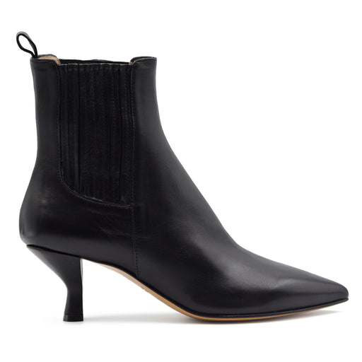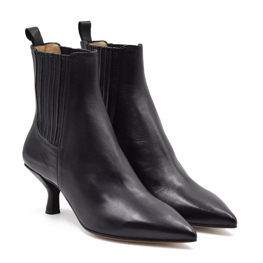 Pomme D'Or• Stivaletto in pelle nera • Lavorazione a sacchetto • Elastici laterali • Silhouette a punta e cuciture a vista frontale • Interno in pelle • Suol...