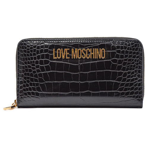 Love Moschino• Portafoglio donna Love Moschino • Ecopelle color cioccolato con finitura effetto embossing • Logo Love Moschino in metallo applicato sul fronte •...