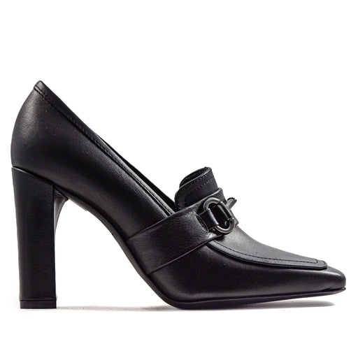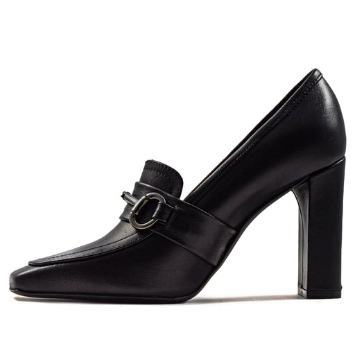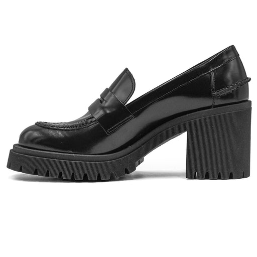 Riccardo P.• Mocassino in pelle opaca nero • Fascetta e vaschetta • Punta stondata • Interno in pelle • Guardolo in rilievo • Tacco di 7.5 cm • Suola in gomma...