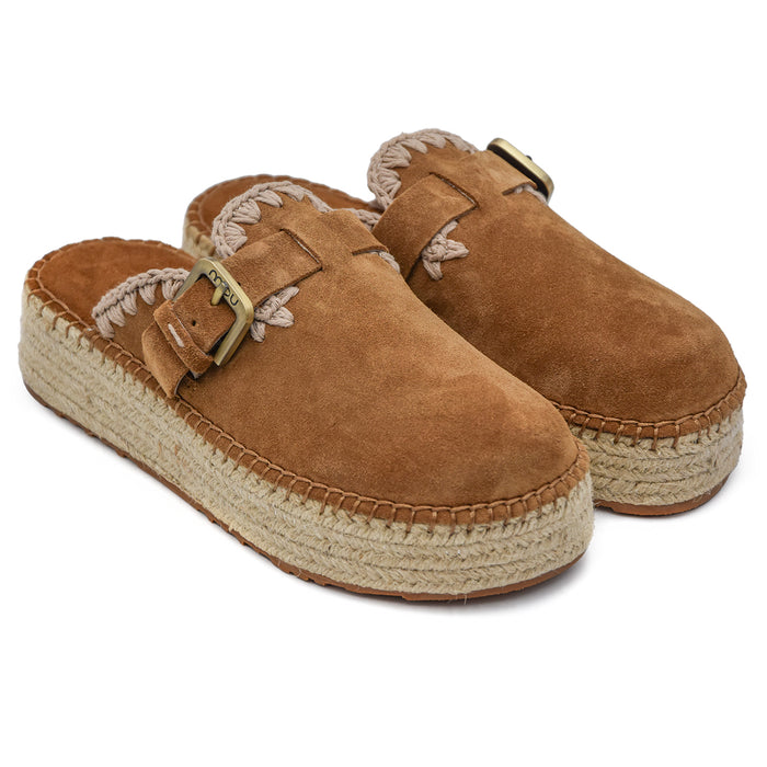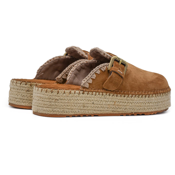 Sabot Mou Donna Jute Clog Plain Suede Cognac In Stile Moderno
