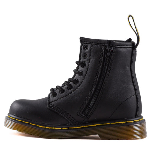 Dr. MartensScarpa Dr. Martens allacciata bassa in pelle softy t nera, 3 fori con lacci neri. Suola in gomma antiscivolo, guardolo goodyear, tomaia e suola cuc...