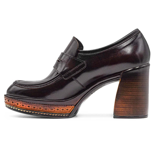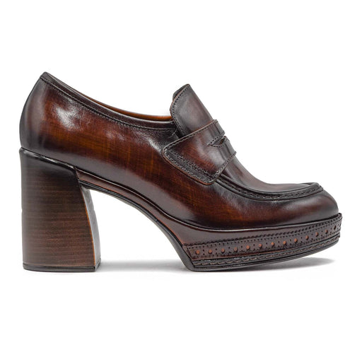 Vivien Lee• Sandalo in pelle nera Vivien Lee• Tacco di 10 centimetri color cuoio• Borchie laterali nel plateau per un tocco di particolarità• Plateau di 4 ce...