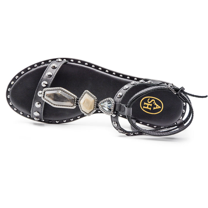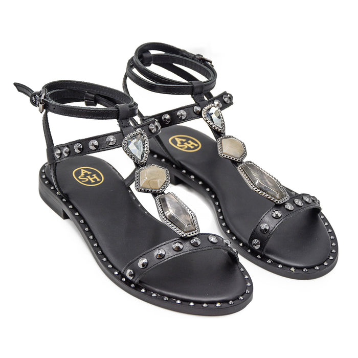 Sandali Ash Donna Penny Nero In Pelle Borchie Argento E Fibbie